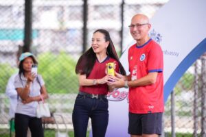 “มาดามแป้ง” นางนวลพรรณ ล่ำซำ นายกสมาคมกีฬาฟุตบอลแห่งประเทศไทยฯ ได้รับการชื่นชม และ ยอมรับในระดับนานาชาติอีกครั้ง หลังรับรางวัล outstanding achievement หรือ รางวัลความสำเร็จที่โดดเด่นในด้านฟุตบอล จาก Mark Gooding เอกอัครราชทูตอังกฤษประจำประเทศไทย ภายในงาน Football Tournament ครบรอบ 170 ปี ความสัมพันธ์ทางการทูต ไทย-อังกฤษ ที่สนาฟุตบอล Polo Football Park วันที่ 19 ตุลาคม 2568