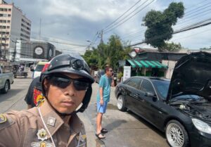 สืบเนื่องจากเมื่อขณะที่ร.ต.ต.วิโรจน์จำมี รอง สว.(จร.) สภ.เมืองชลบุรี ปฏิบัติหน้าที่จราจร อยู่ในพื้นที่ใกล้เคียงได้รับแจ้งจากวิทยุเมืองชลบุรีว่าเกิดเหตุเพลิงไหม้รถยนต์ บริเวณตรงข้ามอุตุนิยมชลบุรี ร.ต.ต.วิโรจน์ จึงได้รีบเดินทางเข้าถึงที่เกิดเหตุทันที และร่วมจนท.ดับเพลิงบ้านสวนดับเพลิงได้ทันท่วงทีก่อนเกิดความเสียหายร้ายแรงจากเหตุดังกล่าวจึงเป็นที่น่าชื่นชมที่ เจ้าหน้าที่ตำรวจ สภ.เมืองชลบุรี กระตือรือร้นและเสียสละมุ่งมั่นตั้งใจการเข้าสถานที่เกิดเหตุอย่างรวดเร็วและมีประสิทธิภาพ