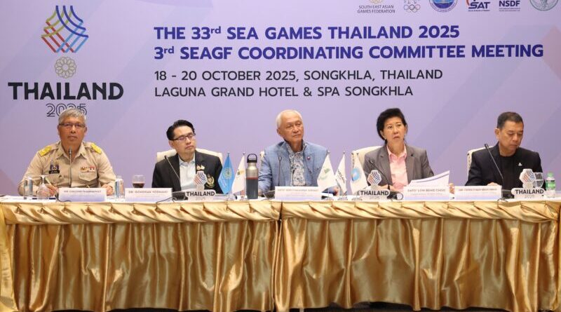 ดร.ก้องศักด ยอดมณี ผู้ว่าการการกีฬาแห่งประเทศไทย (กกท.) พร้อมด้วย ดาโต๊ะซรี ชัยภักดิ์ ศิริวัฒน์ ซีอีโอสหพันธ์กีฬาซีเกมส์ และนายชูชีพ ธรรมเพชร รองผู้ว่าราชการจังหวัดสงขลา ร่วมกันเป็นประธานในการประชุมติดตามความก้าวหน้า การจัดการแข่งขันกีฬาซีเกมส์ ครั้งที่ 33 ของจังหวัดสงขลา ซึ่งเป็นการประชุมติดตาม ครั้งที่ 3 โดยมี ดาโต๊ะ โลว เป่ง ชู ที่ปรึกษานักกฎหมายซีเกมส์, คริส ชาน เซ้ง เฮง ที่ปรึกษาฝ่ายเทคนิคกีฬาซีเกมส์, พลเรือเอก อธินาถ ปะจายะกฤตย์ ผู้อำนวยการสหพันธ์กีฬาเอเชียตะวันออกเฉียงใต้, นางสาวศมจรส มิ่งคำเลิศ ผู้อำนวยการสำนักผู้ว่าการ และโฆษก กกท. , นายยุธยา จีนหีต ผู้อำนวยการฝ่ายพัฒนากีฬาเป็นเลิศ ร่วมประชุม ณ โรงแรมลากูน่า แกรนด์ โฮเทล แอนด์ สปา จังหวัดสงขลา เมื่อวันที่ 20 ตุลาคม 2568 ที่ผ่านมา