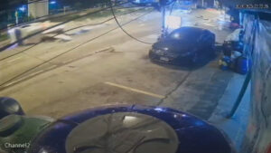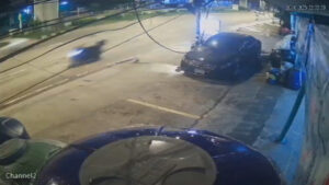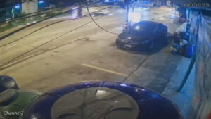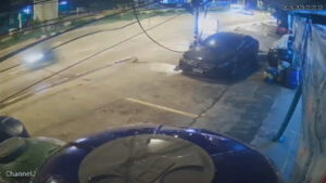 ภาพจากกล้องวงจรปิดบริเวณใกล้เคียง จะเห็นว่าบริเวณจุดกลับรถ มี รถยนต์สีขาวคันหนึ่งกลับรถออกมาอย่างกระชันชิด จนทำให้รถขนส่งที่มาทางตรงต้องหักหลบออกในออกด้านขวา จนปีนเกาะกลางถนนชนเสาไฟส่องสว่างจนพลิกตะแคงไถลไปไกลกว่า 50 เมตร เทกระจาดสิ่งของที่บรรทุกเกลื่อนถนน ก่อนที่รถยนต์สีขาวจะเปิดไฟผ่าหมากค่อย ๆ ถอยหลังออกไปจากจุดเกิดเหตุ