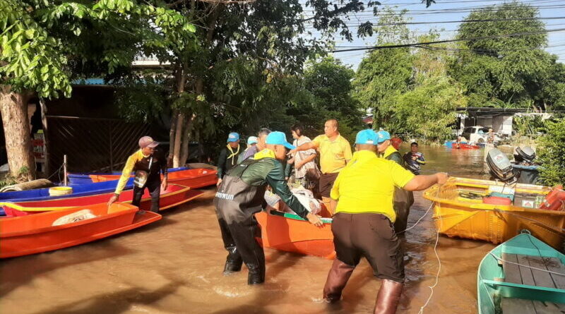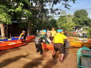 อ่างทอง – คลิปทหารร่วมกับเจ้าหน้าที่กู้ภัยใช้เรือเคลื่อนย้ายศพผู้เสียชีวิตภายในบ้านน้ำท่วม มายังถนนก่อนนำขึ้นรถกู้ภัยนำไปประกอบพิธีบำเพ็ญกุศลที่วัดถนน