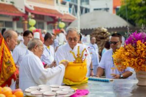วันที่ 20 ตุลาคม 2568 ที่มูลนิธิสว่างบริบูรณ์ธรรมสถานเมืองพัทยา นายวิสิทธิ์ ชวลิตนิติธรรม ประธานมูลนิธิฯ พร้อมด้วยคณะกรรมการและสาธุชน ร่วมประกอบพิธีเชิญเทพยดาฟ้าดิน (เซ็งทีตี่) มาประดิษฐาน ณ โรงเจสว่างบริบูรณ์ธรรมสถานนาเกลือ เพื่อความเป็นสิริมงคล ในการเริ่มต้นเทศกาลกินเจ ประจำปี 2568 พื้นที่พัทยา-นาเกลือ โดยมีประชาชนผู้ศรัทธาจำนวนมากร่วมสวมชุดขาวเข้าร่วมพิธีอย่างคึกคัก