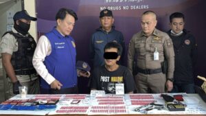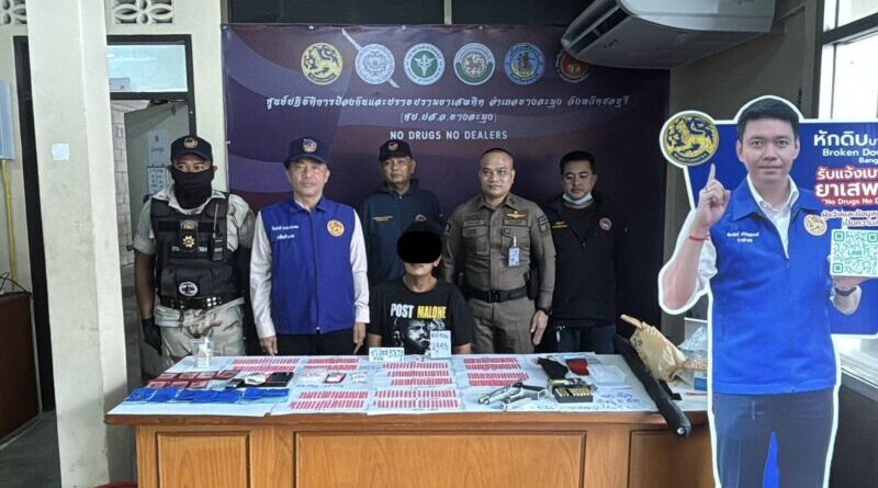 ปกครองบางละมุง ร่วม ตร. รวบ “ตั้ว” พ่อค้ายาเสพติด ยึดยาบ้าเกือบ 3,000 เม็ด-ไอซ์กว่า 50 กรัม พร้อมอาวุธปืน