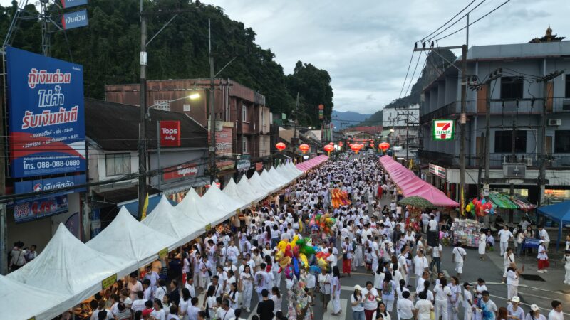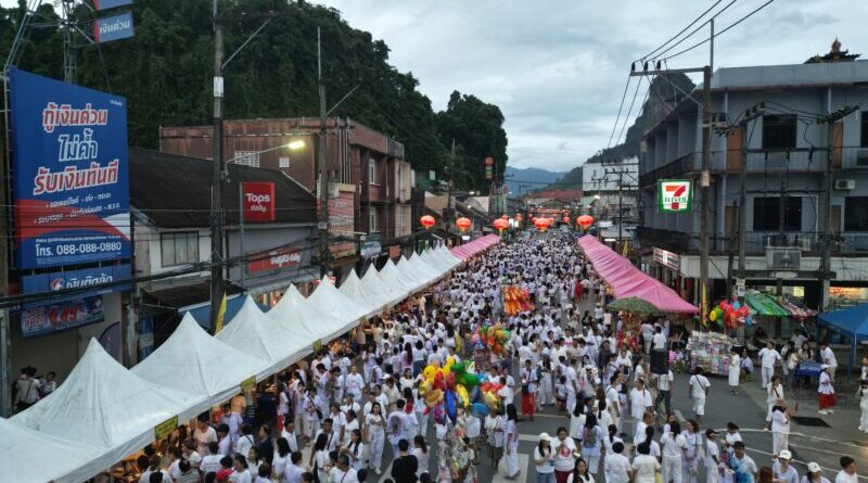 พังงา–คนแห่ร่วมงานอิ่มบุญ9บาทกลางตลาดเมืองพังงา จ่าย9บาทกินอาหารเจฟรีได้กว่า130ซุ้ม