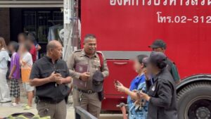 จากการสอบถาม นาย กิม เพื่อนบ้านข้างเคียง บอกว่า ตนเองหันไปเห็นว่ามีกลุ่มควันออกมาจากชั้นสองของบ้านและไม่นานก็เริ่มมีแสงเพลิงจึงนำรีบแจ้ง รปภ.ให้ประสานรถดับเพลิงมาระวับเหตุ