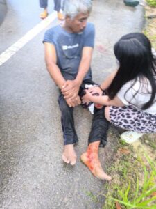 เวลา 17.25น. วันที่ 27 ตุลาคม 2568 ขณะที่นางสาว นันทิยา พุทธกำเหนิด หรือน้องมิ้ว นั่งรถยนต์กับคุณพ่อผ่านถนนริมคลองในหลวง หมู่2 ตำบลนาชะอัง อำเภอเมือง จังหวัดชุมพร เพื่อเดินทางไปเยี่ยมปู่ซึ่งไม่สบายหนักอยู่ที่บ้าน ในตำบลนาชะอัง ได้สังเกตุเห็นผู้ชายอายุประมาณ 55-60ปี นอนร้องขอความช่วยเหลืออยู่บนถนนซึ่งมีฝนตกหนัก น้องมิ้ว จึงบอกให้คุณพ่อจอดรถและลงไปสอบถาม ทราบว่าชายคนดังกล่าวโดนควายขวิดที่ต้นขาซ้าย มีแผลเปิดขนาดใหญ่กว้างประมาณ 30 ซม.มีเลือดออกจำนวนมาก น้องมิ้ว ไม่รอช้ารีบถอดเสื้อคลุมของตนเองเพื่อพันห้ามเลือดแล้วตะโกนบอกให้คุณพ่อรีบโทรแจ้ง 1669 เพื่อให้เจ้าหน้าที่กู้ภัยมาให้การช่วยเหลือต่อไป