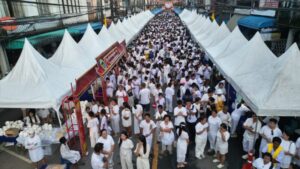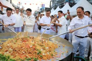 พังงา–รมช.เกษตร ร่วมผัดหมี่มงคลเก้าเซียนกระทะยักษ์ เปิดงานอิ่มบุญกินผัก ปิดถนนกลางตลาดท้ายเหมืองกินอาหารเจฟรีกว่า100ร้าน
