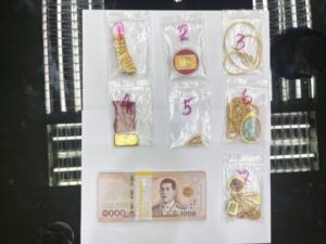 1. กำไลข้อมือทองคำ น้ำหนัก 3 บาท จำนวน 1 เส้น มูลค่า 195,000 บาท