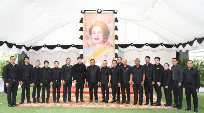 นายนริศ รามัยวงศ์ผู้ว่าราชการจังหวัดชลบุรีหัวหน้าส่วนราชการนายกเทศบาลนายกองค์การบริหารส่วนตำบลเจ้าหน้าที่ในสังกัดกระทรวงทรัพยากรและสิ่งแวดล้อมยืนสงบนิ่งเป็นเวลา 93 วินาทีร้องเพลงสรรเสริญพระบารมีและร่วมลงนามถวายอาลัยเบื้องหน้าพระฉายาลักษณ์ สมเด็จพระนางเจ้าสิริกิติ์ พระบรมราชินีนาถ พระบรมราชชนนีพันปีหลวงเป็นอันเสร็จสิ้นพิธี