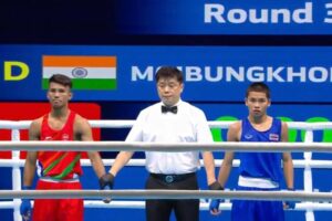 ซิงห์ มอยบุงคาบามนักชกอินเดีย1-4ในรุ่น50กก.เช่นเดียวกับ รุ่น66กก.สันติ แก้วบุญเรือง เหรียญทองแดงชิงแชมป์ประเทศไทยปี68 แพ้อาร์เอสซี เการิสซังการ์ เดซมุกห์ นักชกอินเดีย ยกที่3 ในรอบก่อนรองฯ มหกรรมกีฬาเอเชี่ยนยูธเกมส์ครั้งที่ 3 ที่ประเทศบาห์เรน เมื่อวันที่ 27ต.ค.