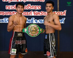 เมื่อเวลา14.00น.ของวันอังคารที่28 ตุลาคม 2568 ณโรงแรม Bonito Chinos Hotel นครสวรรค์ จ.นครสวรรค์ ที่ผ่านมา ด้าน เสี่ยตังค์ โปรโมเตอร์ปิยะรัตน์ วชิรรัตนวงศ์ เป็รประธานการชั่งน้ำหนักพร้อมตรวจร่างกายและประชุมกติกาอย่างเป็นทางการ ของคู่เอกระหว่าง กุมารดอย เพชรยินดีอะคาเดมี่ ชิงแชมป์สภามวยโลกแห่งเอเชีย(WBC ASIA)รุ่นซูเปอร์ฟลายเวท 115ปอนด์ พบ เรย์มาร์ค อาลิคาบา(ผู้ท้าชิงชาวฟิลิปปินส์ โดยผลการชั่งน้ำหนักทั่งคู่ได้ชั่งน้ำหนักผ่านตามพิกัด 115ปอนด์
