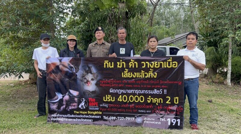 ภายหลังได้รับรายงานเหตุการณ์ทารุณกรรมสัตว์อย่างต่อเนื่อง โดยมีสุนัขตายถึง 8 ตัวและแมวจำนวนมากถูกวางยา ล่าสุดพบ หมาแม่ลูกอ่อน ถูกวางยาเสียชีวิตเมื่อเช้าวันที่ 27 ตุลาคม 2568 และอีกตัวในช่วงค่ำวันเดียวกัน นางสมคิด บุหงาชาติ ประธานองค์กรจัดสวัสดิภาพสัตว์เดอะโฮปสงขลา จึงได้เร่งลงพื้นที่ ศาลาบ้านโคกม่วง หมู่ 8 ตำบลโคกม่วง อำเภอคลองหอยโข่ง จังหวัดสงขลา