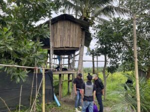 ในขณะเดียวกันบริเวณหลังบ้าน เจ้าหน้าที่พบขนำไม่มีเลขที่สร้างอยู่บนต้นไม้โดยต้องใช้บันไดปีนขึ้น จึงเข้าสอบตรวจ โดยมี นายวิศิษฎ์ เป็นผู้นำตรวจค้นและพบยาบ้า จำนวน 2,000 เม็ด ซุกซ่อนไว้ในตะกร้าผ้าสีดำ และอีก 605 เม็ด พบใส่ไว้ในกล่องสีขาวโดยซุกซ่อนอยู่บนใต้หลังคาในขนำ และ ซึ่งก็ยังพบยาบ้า จำนวน 1,006 เม็ด ซุกใส่ไว้ในซองพลาสติกสีดำแดงคล้ายซองบะหมี่กึ่งสำเร็จรูปและตั้งไว้บนที่พักเท้ารถจักรยานยนต์ ยี่ห้อ ฮอนด้า รุ่น PCX สีน้ำเงิน ซึ่งมีผ้าคลุมปิดรถไว้ รวมยาบ้าทั้งหมด จำนวน 3,611 เม็ด เจ้าหน้าที่จึงทำการตรวจยึดไว้เป็นหลักฐาน