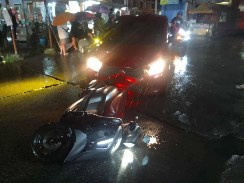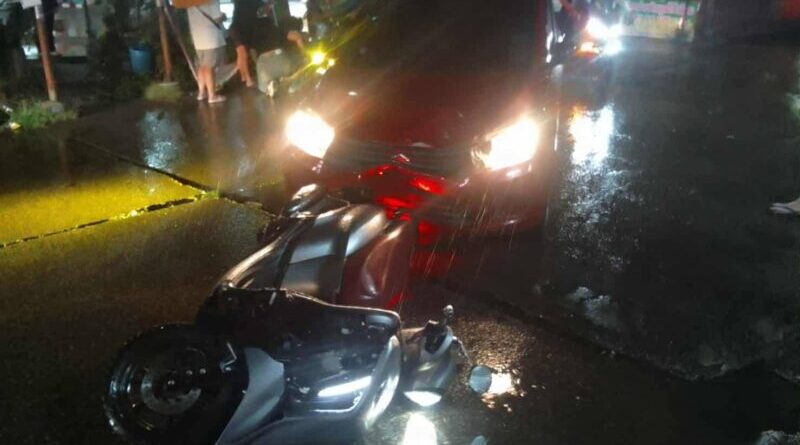 เกิดอุบัติเหตุระหว่างรถจักรยานยนต์กับรถยนต์นั่งส่วนบุคคล บริเวณหน้าตลาดวัดหลวงพ่อโอภาสี ภายในซอยสุขสวัสดิ์ 26 พื้นที่รับผิดชอบของ สน.บางมด