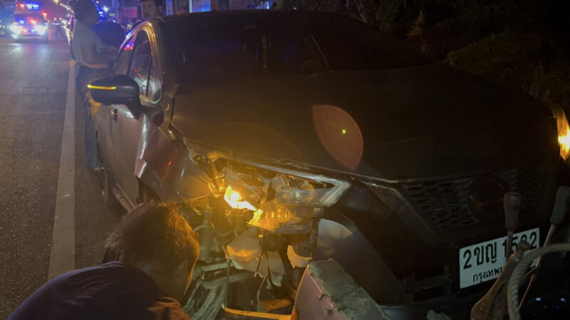 นายวิรัตน์ อายุ 39 ปี คนขับรถยนต์เก๋ง กล่าวว่า ตนขับรถมาจาก ต.คลองด่าน มุ่งหน้า อ.บางบ่อ เมื่อมาถึงจุดเกิดเหตุ จู่ ๆ มีรถ รถจักรยานยนต์พุ่งข้ามเลนมาชนรถยนต์ของตนอย่างเต็มแรงเป็นเหตุให้ได้รับความเสียหายด้านหน้าขวาพังยับเยิน จากนั้นตนจึงรีบจอดรถลงมาดู ยืนยันไม่ได้ชนคนขับขี่รถ รถจักรยานยนต์ เป็นเหตุการณ์เกิดเร็วมากตนไม่แน่ใจในรายละเอียด