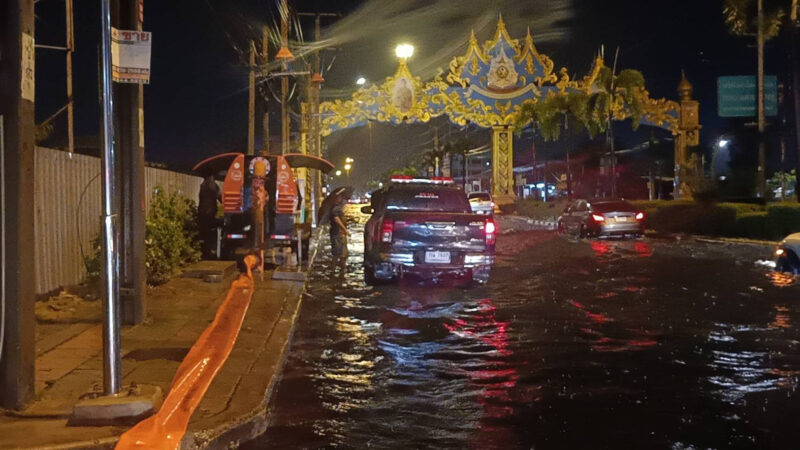 ฝนถล่มสมุทรปราการ! ถนนแพรกษาจมบาดาล มอไซค์ดับกลางน้ำระนาว เทศบาลเร่งสูบแข่งเปิดเทอม