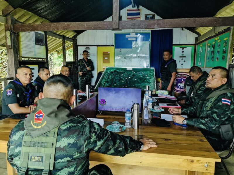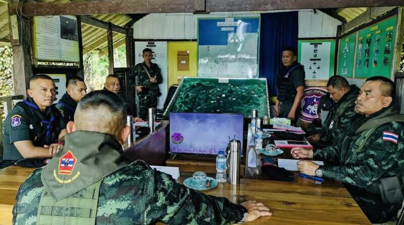 ขณะที่เช้าวันเดียวกัน พ.อ.สมคิด คงแข็ง รอง ผบ.กกล.เทพสตรี พร้อมคณะ เดินทางโดย ฮ.ทบ. ตรวจเยี่ยมฐานปฏิบัติการชุดเฝ้าตรวจชายแดนที่ 4102 และตรวจภูมิประเทศ ชุดเฝ้าตรวจชายแดนที่ 4102 บ้านช่องหินดาด ม.10 ต.รับร่อ อ.ท่าแซะ จ.ชุมพร โดยมี พ.ต.อ.จาริพัฒน์ ทองแดง ผกก.ตชด.41 / ผบ.ศฝด.411, ร.ต.ท.นพพนันท์ ศรีสุภะ ผบ.มว.กก.ตชด.41 / รักษาราชการแทน ผบ.ร้อย ตชด.414 / นายตำรวจประจำ ศฝด.411 (สย.1), ร.ต.อ.วัฒนา รัญจุล หัวหน้าชุดเฝ้าตรวจชายแดนที่ 4102 และข้าราชการตำรวจประจำชุดฯ ให้การต้อนรับ