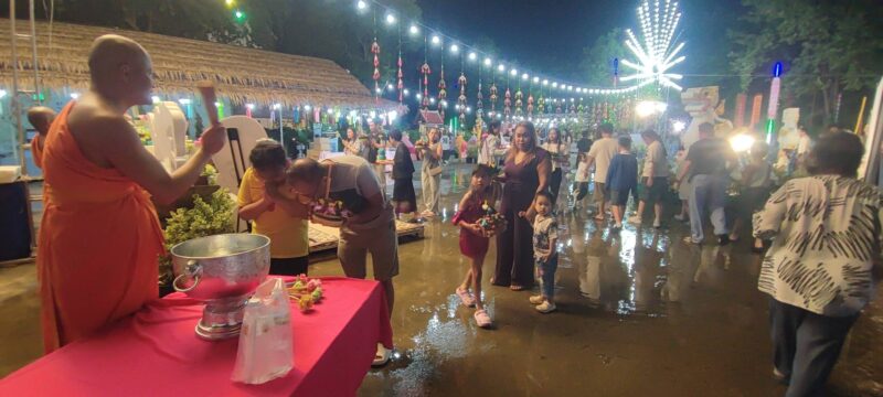 ปทุมธานีประชาชนหลั่งไหลลอยกระทงภายในวัดริมแม่น้ำเจ้าพระยาแม้จะมีน้ำเอ่อท่วมเข้าวัด