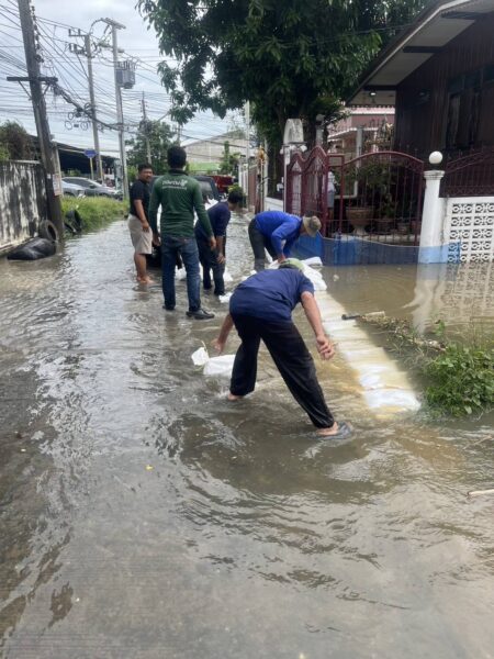 วันที่ 6 พ.ย. 2568 ที่หน้าตลาดสดเทศบาลเมืองปทุมธานี ต.บางปรอก อ.เมือง จ.ปทุมธานี ได้เกิดภาวะน้ำในแม่น้ำเจ้าพระยาได้เอ่อล้นสูงขึ้นเข้าท่วมตลาดสด ตลาดศิริวัฒนา ด้านรอยต่อวัดหงษ์ไปถึงสะพานปทุมธานี1น้ำได้เอ่อล้นข้ามถนนเข้ามาชั้นใน และมีน้ำผุดขึ้นจากท่อระบายน้ำและช่องถนนที่แตกออก นายกเทศมนตรีเทศบาลเมืองปทุมธานีได้นำกำลังเจ้าหน้าที่ป้องกันบรรเทาภัยออกนำกระสอบทรายเสริมแนวคันกั้นน้ำเพื่อไม่ให้น้ำเข้าทะลักท่วมชั้นในได้ ซึ่งใช้กระสอบทรายจำนวนมากตั้งแนวกั้น จนสามารถกั้นน้ำได้และได้เร่งเครื่องสูบน้ำระบายออกสู่แม่น้ำเจ้าพระยาทันที