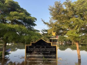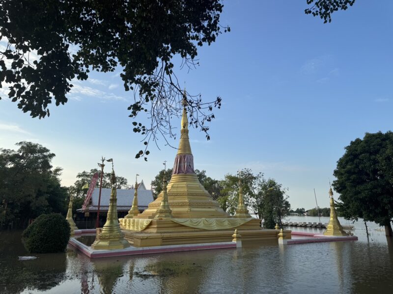วันที่ 11 พ.ย. 2568 ผู้สื่อข่าวได้ลงพื้นที ที่ ต.ท้ายเกาะ อ.สามโคก จ.ปทุมธานี ซึ่งมีรอยต่อติดกับ อ.บางไทร จ.พระนครศรีอยุธยา ซึ่งเป็นด่านแรกที่จะรับมวลน้ำต่อจาก จ.พระนครศรีอยุธยา หลังจากเขื่อนเจ้าพระยาปล่อยน้ำเพิ่มเป็น 2,900 ลบ.ม/วินาที โดยพื้นที่ส่วนใหญ่ของ ต.ท้ายเกาะ อยู่ติดริมแม่น้ำเจ้าพระยา ทำให้ทั้งโรงเรียน วัดและบ้านเรือนประชาชนจมอยู่ในน้ำหลายร้อยหลังคาเรือน ประชาชนต้องนำรถและสัตว์เลี้ยงมาไว้ริมถนนที่น้ำยังท่วมไม่ถึง การสัญจรเข้าออกบ้านต้องใช้เรือและโฟมลอยน้ำในการสัญจร