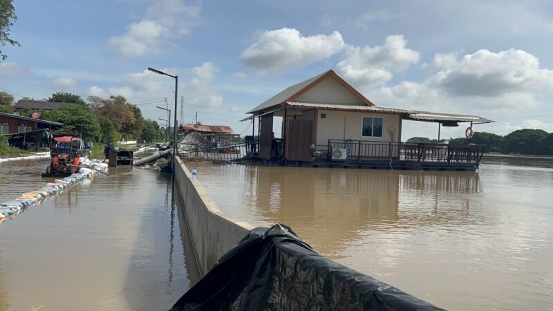 อ่างทอง – ชุมชนริมแม่น้ำเจ้าพระยาตำบลย่านซื่อวิกฤตหลังกลางดึกน้ำลอดมุดใต้กำแพงเขื่อนเจ้าหน้าที่เร่งป้องกัน