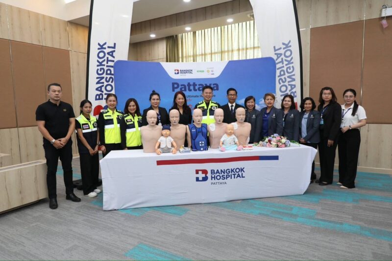 วันที่ 11 พฤศจิกายน 2568 ที่ห้องประชุมโรงพยาบาลกรุงเทพพัทยา จ.ชลบุรี ดร.พิเรษฐ์ หนองช้าง เลขาธิการสถาบันการแพทย์ฉุกเฉินแห่งชาติ, พญ.ปิยาภรณ์ ทิพยะรัตน์ ผู้อำนวยการโรงพยาบาลกรุงเทพพัทยา, นายประสิทธิ์ ทองทิตย์เจริญ ประธานมูลนิธิสว่างบริบูรณ์ธรรมสถานเมืองพัทยา และ ดร.ศิวัช บุญเกิด รองปลัดเมืองพัทยา ร่วมงานแถลงข่าวโครงการอบรมจิตอาสากู้ชีพฉุกเฉิน “CPR on the Beach” ร่วมแถลงข่าวโครงการดังกล่าว ซึ่งมี ร.ต.อ.หญิงพรพนา โชคไทย ผู้อำนวยการโรงพยาบาลเมืองพัทยา เจ้าหน้าที่หน่วยงานที่เกี่ยวข้อง แขกผู้มีเกียรติ และสื่อมวลชน เข้าร่วมงานอย่างคับคั่ง
