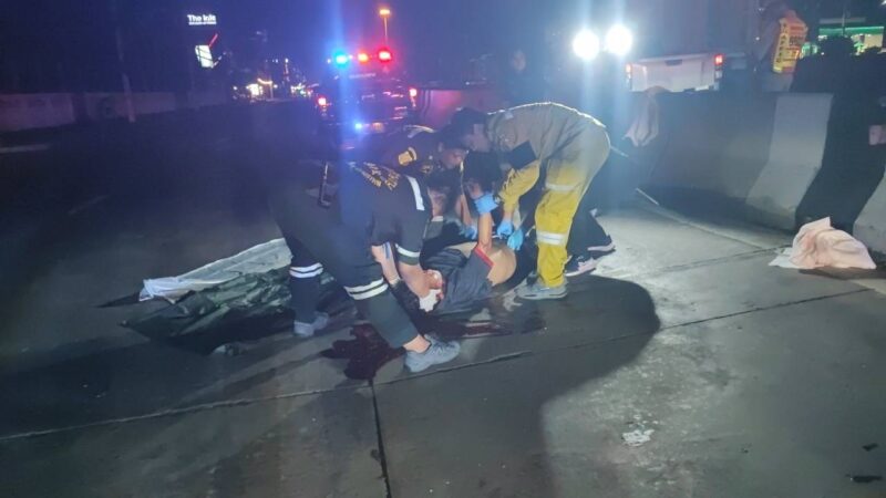 ปทุมธานีหนุ่มซิ่งจยย.ทางด่วนชนป้ายสัญญาณจราจรเสียชีวิต
