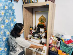 ต่อมาได้ย้ายกลับมาอยู่บ้านทำสวนทุเรียนที่อำเภอสวี ประมาณ 1 เดือนก่อนทำความสะอาดบ้านและทำความสะอาดหิ้งพระ จึงเอาตลับทองฯที่ใส่รกแมวเปิดออกดู แทบไม่อยากเชื่ออึ้งอยู่สักพักเพราะรกแมว มีขนาดใหญ่ขึ้น อัดแน่นอยู่ในตลับทองฯ เอาออกมาคลี่ดูพบว่ามีขนาดใหญ่ขึ้นมากเหมือนมีชีวิต เมื่อสังเกตดูใกล้ๆเหมือนมีขนผุดขึ้นมาไรๆด้วย
