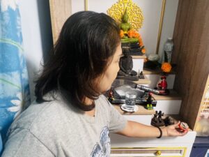 โดยน.ส.เพ็ญทิพย์ฯ เล่าว่า เมื่อประมาณ 10 ปีก่อน สมัยอยู่ที่กรุงเทพมหานคร เพื่อนนำรกแมวมาฝากเพราะเชื่อว่า ใครมีไว้ครอบครองจะทำให้ชีวิตความเป็นอยู่ดีขึ้น หรืออาจจะมีโชคมีลาภ จากนั้นก็ได้นำรกแมวใส่ไว้ในตลับในทองรูปประพรรณตอนได้มาใหม่ๆมีขนาดประมาณ 1 เซนติเมตรเท่านั้น และวางไว้บนหิ้งพระ เมื่อถึงวันพระก็จะถวายน้ำและอาหารแมวเป็นเม็ดวางไว้