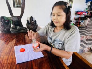 ต่อมาได้ย้ายกลับมาอยู่บ้านทำสวนทุเรียนที่อำเภอสวี ประมาณ 1 เดือนก่อนทำความสะอาดบ้านและทำความสะอาดหิ้งพระ จึงเอาตลับทองฯที่ใส่รกแมวเปิดออกดู แทบไม่อยากเชื่ออึ้งอยู่สักพักเพราะรกแมว มีขนาดใหญ่ขึ้น อัดแน่นอยู่ในตลับทองฯ เอาออกมาคลี่ดูพบว่ามีขนาดใหญ่ขึ้นมากเหมือนมีชีวิต เมื่อสังเกตดูใกล้ๆเหมือนมีขนผุดขึ้นมาไรๆด้วย