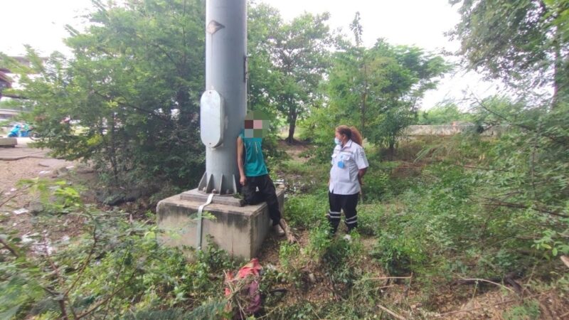ปทุมธานี – คนเก็บของเก่าช็อคเจอคนผูกคอตายคาเสาไฟส่องสว่าง