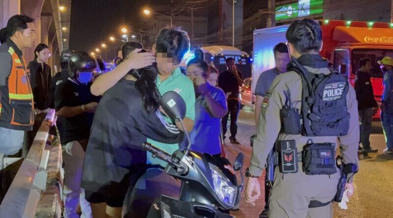 ที่เกิดเหตุอยู่บนถนน เลนขวา พบ ร่างผู้เสียชีวิต เป็นเยาวชนหญิง 1 ราย อายุ 14 ปี ซึ่งเป็นนักเรียนชั้นมัธยมศึกษาปีที่ 2 โรงเรียนดังในสมุทรปราการ นอนหงายเสียชีวิตจมกองเลือดอยู่กลางถนน สภาพศีรษะมีบาดแผลฉกรรจ์จนกะโหลกเปิด ข้างร่างผู้เสียชีวิตยัง พบ กระเป๋าหนังสือ ตกอยู่ ใกล้กัน พบ รถจักรยานยนต์ ยี่ห้อ ฮอนด้า เวฟ สีเทา ทะเบียน 6 ขง 7744 กรุงเทพมหานคร สภาพมีร่องรอยครูดกับพื้นถนนเล็กน้อย โดยในจุดเกิดเหตุยังมีผู้บาดเจ็บเป็นเยาวชน อีก 2 ราย รายแรกเป็นชาย อายุ 16 ปี มีบาดแผลถลกตามร่ายกาย อีกรายเป็นหญิง อายุ 16 ปี มีแผลแตกที่ศีรษะ เจ้าหน้าที่มูลนิธิให้การช่วยเหลือปฐมพยาบาลในจุดเกิดเหตุ