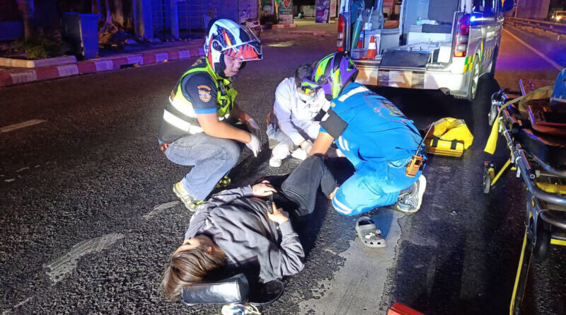 สาววัย 32 ขี่มอไซค์ ถูกสุนัขวิ่งตัดหน้าล้มเจ็บกลางถนน