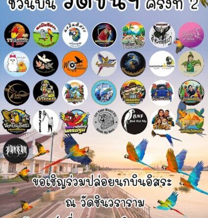 ปทุมธานี – กลุ่มคนเลี้ยงนกบินอิสระเชิญชาวปทุมธานีและผู้ที่รักการเลี้ยงนกบินอิสระจากทั่วประเทศ ร่วมงาน ชวนบิน วัดชินฯ ครั้งที่ 2
