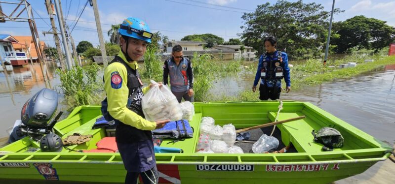 มูลนิธิป่อเต็กตึ๊ง นำโดย อาสาสมัครกู้ภัยจุด สภ.อินทร์บุรี ท่าช้าง และบางระจัน ยังคงผนึกกำลังสู้ภัยน้ำท่วมต่อเนื่อง! จัดตั้งกองอำนวยการรับแจ้งเหตุ-ช่วยเหลือ อพยพ แจกจ่ายถุงยังชีพ และอาหารปรุงสุกบรรจุกล่องพร้อมน้ำดื่ม อาหารสุนัขและแมว แก่ผู้ประสบภัยน้ำท่วมในพื้นที่จังหวัดสิงห์บุรี