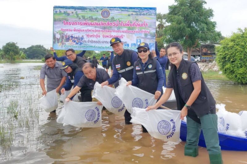 สำนักงานประมงจังหวัดลพบุรี ร่วมกับอำเภอท่าวุ้ง ศูนย์วิจัยและพัฒนาประมงน้ำจืดลพบุรี ร่วมกันปล่อยพันธุ์สัตว์น้ำลงในพื้นที่น้ำท่วม เพื่อเป็นการเพิ่มแหล่งอาหารให้กับประชาชนที่ได้รับผลกระทบหลังน้ำลดกว่า 30 ล้านตัว