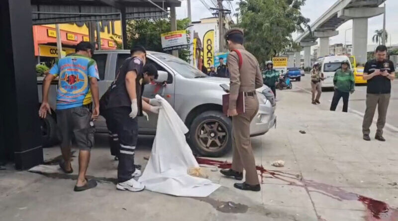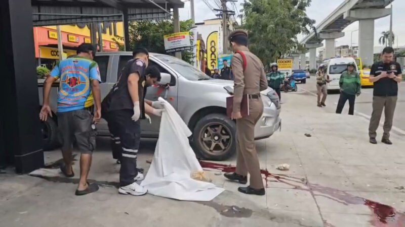 ในที่เกิดเหตุ พบรถยนต์นั่งส่วนบุคคล ยี่ห้อ มิตซูบิชิ ปาเจโร่สปอร์ต สีน้ำตาล ทะเบียน ฆล 3531 กรุงเทพมหานคร จอดอยู่ สภาพด้านหน้าพังยับ ที่ด้านหน้าที่เสาไฟส่องสว่างมีร่องรอยการถูกชนจนเอียง ใกล้กันพบร่าง นายวิชัย สุขสันติ อายุ 60 ปี มีบาดแผลที่ศีรษะขนาดใหญ่ นอนคว่ำหน้าจมกองเลือดอยู่บนฟุตบาท ข้างรถยนต์กระบะ ยี่ห้อ อีซูซุ ดีแมคซ์ สีเทา ทะเบียน 8 กร 7341 กรุงเทพมหานคร ที่จอดอยู่ข้างร้านฟิล์มดังกล่าว มีคราบเลือด ชิ้นส่วนเนื้อ และเส้นผม ติดอยู่ที่ล้อแม็กหน้าฝั่งขวา ส่วนคู่กรณี คือ นายธนันวัฒน์ อริยบุณยานนท์ อายุ 60 ปี ชาวชลบุรี ซึ่งเป็นคนขับรถปาเจโร่สปอร์ต หลังเกิดเหตุได้ถูกเจ้าหน้าที่ตำรวจคุมตัวไปที่โรงพัก