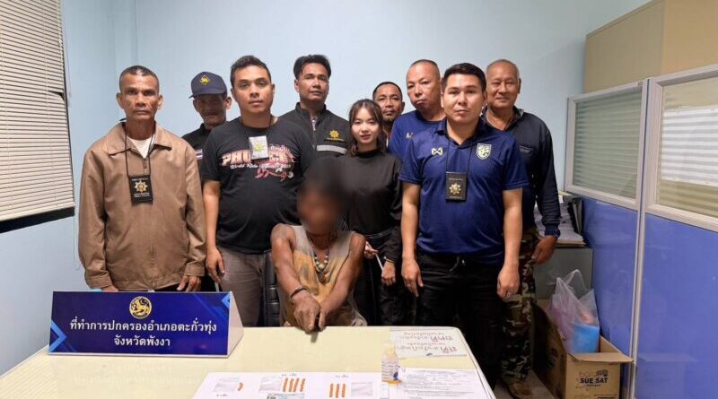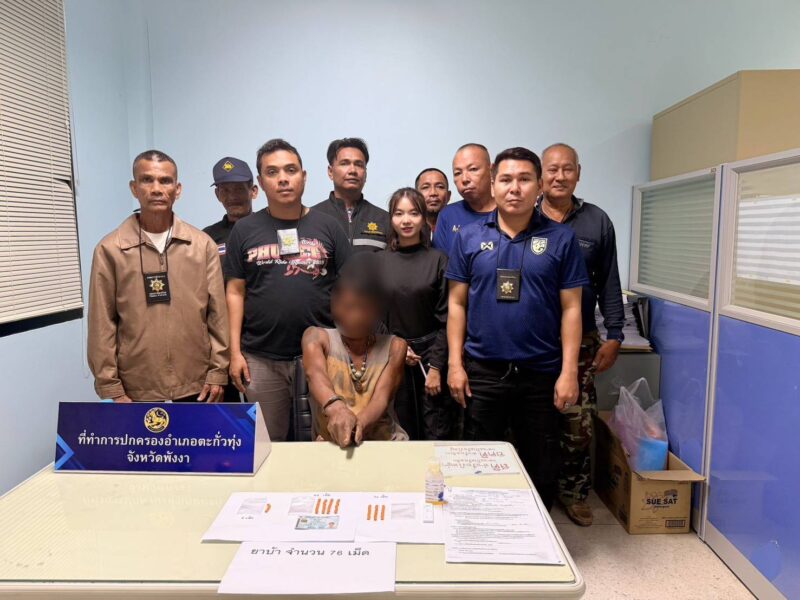 ฝ่ายปกครองอำเภอตะกั่วทุ่ง เดินหน้าปราบปรามยาเสพติด จับผู้ต้องหาพร้อมยาบ้า 76เม็ดที่บ้านเขาเปาะ