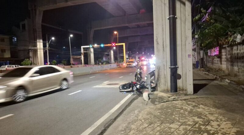 ร.ต.อ.พรชัย ประมวลสุข รอง สว.สอบสวน สน.ท่าพระ รับแจ้งอุบัติเหตุรถยนต์พุ่งชนรถจักรยานยนต์ บริเวณทางลงอุโมงค์ท่าพระ ถนนรัชดาภิเษก มุ่งหน้าถนนจรัญสนิทวงศ์ มีผู้บาดเจ็บอาการสาหัสเป็นหญิง 1 ราย จึงนำกำลังพร้อมประสานอาสาสมัครมูลนิธิป่อเต็กตึ๊งรุดตรวจสอบทันที