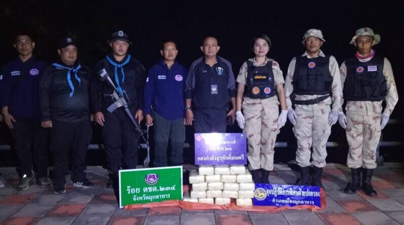 มุกดาหาร ทหารพรานจับมือกับปลัดหญิง สนธิกำลังยึดยาบ้า 190,000 เม็ด ทิ้งริมแม่น้ำโขงมุกดาหาร ก่อนขับเรือหางยาวข้ามฝั่งไปประเทศเพื่อบ้าน