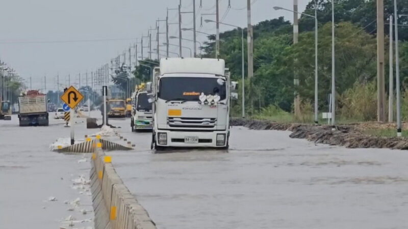 อ่างทอง – เจ้าหน้าที่ทางหลวงปรับแผนกู้ถนนทางหลวง33หลังพบสาเหตุน้ำเอ่อล้นท่อระบายน้ำ
