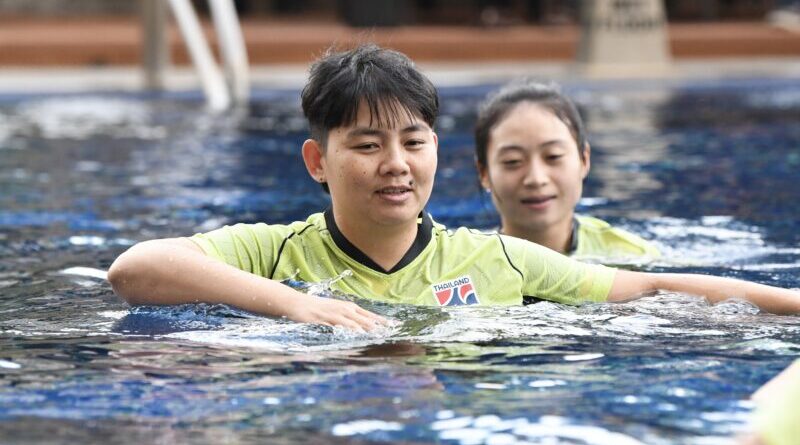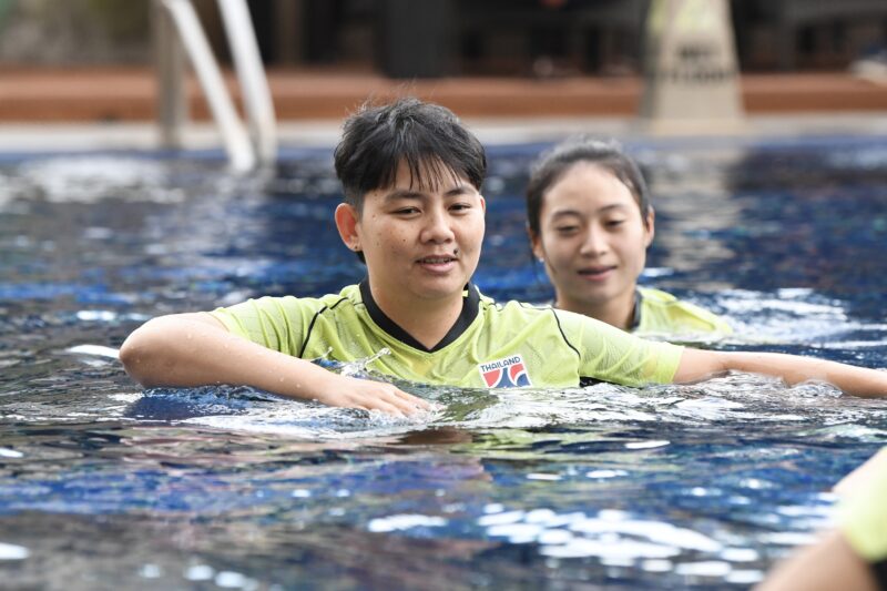 การฝึกซ้อมครั้งนี้มี “โค้ชโอ” ธนาธร สันทนาประสิทธิ์ หัวหน้าผู้ฝึกสอน แบ่งผู้เล่นเป็นสองกลุ่มลงสระน้ำเพื่อฟื้นฟูร่างกาย และเข้าฟิตเนสเพื่อเสริมสร้างกล้ามเนื้อ ซึ่งใช้เวลา 30 นาที