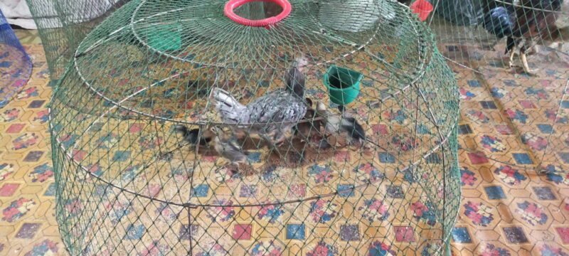 จำเป็นต้องขนย้ายไก่ชนที่เพาะเลี้ยงไว้สร้างรายได้ นำขึ้นมาเลี้ยงและอยู่อาศัยด้านบนบ้านเพื่อความปลอดภัย จะนำไปไว้ริมถนน ก็หวั่นว่าจะโดนสุนัขกัดตาย และโดนขโมยไป ซึ่งได้ลงทุนซื้อพ่อไก่แม่ไก่มาเพาะพันธ์ุลูกขายได้ร่วมปี ซึ่งจวนจะขายได้แล้ว แต่น้ำกลับมาท่วมฟาร์มที่เลี้ยง จึงต้องขนย้ายไก่ทั้งหมดขึ้นไว้ที่บนบ้าน แต่ก็มีไก่ชนบางส่วนที่ตายไป เนื่องจากเกิดภาวะเครียด แต่ก็ต้องดูแลส่วนที่เหลือให้ดีอย่างเต็มที่ โดยเลี้ยงดูแลอาศัยอยู่บนบ้านกับเจ้าของ ไปจนกว่าน้ำจะลดลง ก็จะนำกลับไปเลี้ยงที่ฟาร์มดังเดิม และนำไปขายเพื่อสร้ายได้ต่อไป