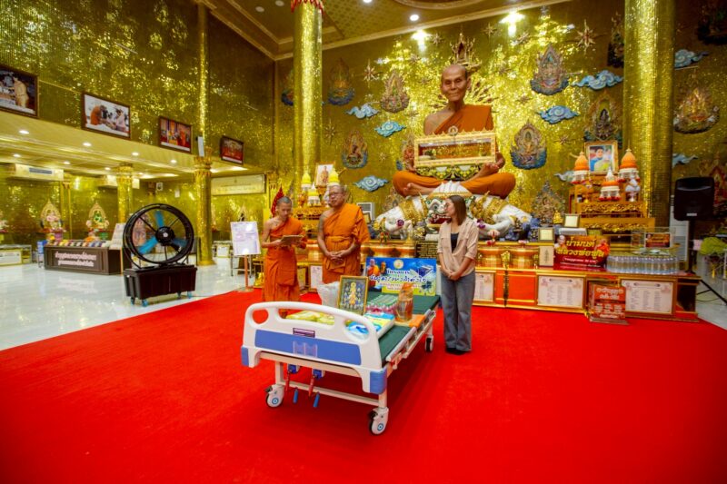 แม้จะเป็นพื้นที่ที่ห่างไกลจากที่ตั้งของวัดไผ่ล้อมพระอารามหลวง จังหวัดนครปฐม แต่พระครูปลัดสิทธิวัฒน์ หลวงพี่น้ำฝน ผู้รักษาการแทน เจ้าอาวาสฯ ยังคงขับเคลื่อนโครงการธนาคารแห่งกำลังใจ เพื่อสงเคราะห์ญาติโยมที่ประสบปัญหาในการดำเนินชีวิต หนึ่งในนั้นคือการจัดหาเตียงสำหรับผู้ป่วยให้กับผู้สูงวัย และผู้ป่วยติดเตียงซึ่งมีความจำเป็นในการพักฟื้นและรักษาตัว รวมถึงยังมีการประสานงานให้ความช่วยเหลือในด้านต่างๆ เพื่อให้วัดยังคงเป็นศูนย์กลางแห่งการช่วยเหลือและเป็นทางเลือกสำหรับประสานงานกับหน่วยงานต่างๆ ด้วย