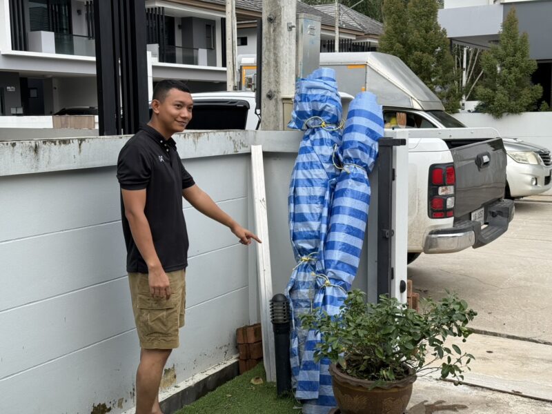 เจ้าของบ้านซึ่งทำฟาร์มกุ้งและเลี้ยงปลาสวยงามอยู่แล้ว บอกว่า นำแนวคิดจากคลิปออนไลน์ Youtube ,Facebook มาประยุกต์ใช้ โดยอาศัยปั๊มน้ำตู้ปลา และเครื่องสูบน้ำต่อสายยางออกนอกบ้าน ส่วนค่าใช้จ่ายสำคัญคือเครื่องปั่นไฟประมาณ 30,000 บาท และผ้าใบกับอุปกรณ์อื่น ๆ ราว 2,000 บาท พร้อมเปิดเครื่องปั่นไฟให้เพื่อนบ้านเข้ามาชาร์จโทรศัพท์เพื่อใช้สื่อสารในช่วงวิกฤต ทั้งนี้ย้ำว่าวิธีดังกล่าวเหมาะสำหรับพื้นที่ที่ “ระดับน้ำไม่สูงมาก” และ “มีกำแพงบ้านแข็งแรงเพียงพอ” จึงจะสามารถรับแรงดันน้ำได้อย่างปลอดภัย