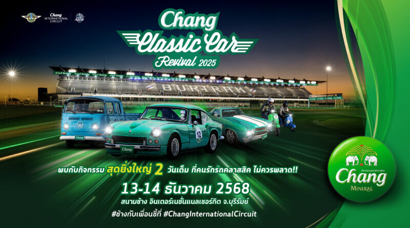 ทั้งนี้ ในส่วนของงาน “Chang Classic Car Revival 2025” ในวันเสาร์และอาทิตย์ที่ 13-14 ธันวาคม 2568 ที่ สนามช้าง อินเตอร์เนชั่นแนล เซอร์กิต จังหวัดบุรีรัมย์ เปิดให้เข้าชมฟรี ไม่มีค่าใช้จ่าย หรือรับชมทางออนไลน์ได้ทางเพจ Chang Circuit Buriram