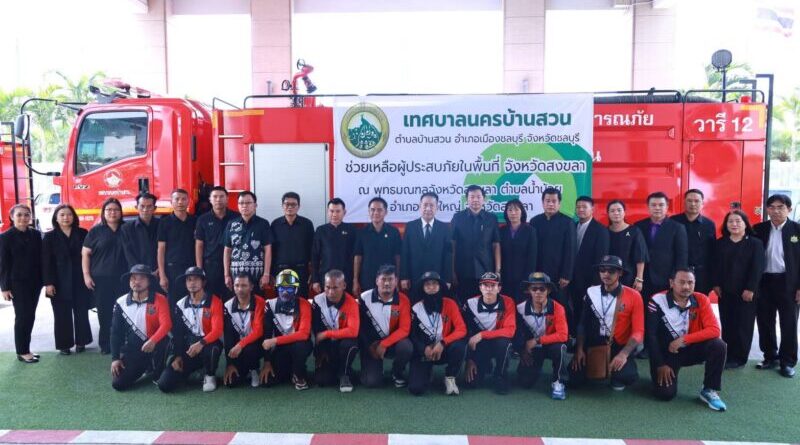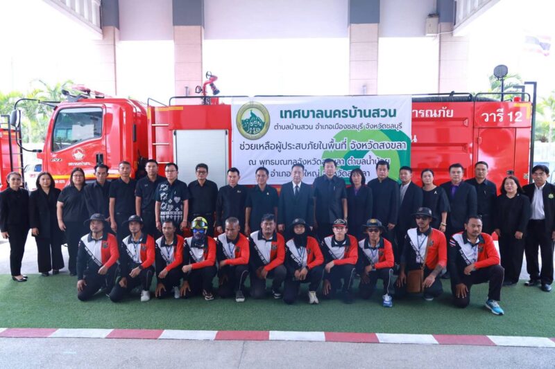 ร่วมส่งกำลังเจ้าหน้าที่รวม 14 คน พร้อมเครื่องจักรกลสาธารณภัยและวัสดุอุปกรณ์ ประกอบด้วย รถบรรทุกน้ำ 6 ล้อ 1 คัน รถบรรทุกน้ำ 10 ล้อ 1 คัน และรถยนต์ตรวจการณ์ 1 คัน ของเทศบาลนครบ้านสวน ออกเดินทางไปสนับสนุนการช่วยเหลือประชาชนและฟื้นฟูพื้นที่ประสบอุทกภัยในจังหวัดสงขลานายนริศ นิรามัยวงศ์ กล่าวว่า การเดินทางไปปฏิบัติภารกิจครั้งนี้ เป็นการปฏิบัติหน้าที่ในนามจังหวัดชลบุรี เพื่อร่วมบรรเทาความเดือดร้อนของพี่น้องผู้ประสบภัยน้ำท่วม พร้อมมอบกำลังใจให้เจ้าหน้าที่ทุกนายปฏิบัติงานอย่างเต็มกำลังความสามารถ และขอให้เดินทางไป-กลับโดยสวัสดิภาพ