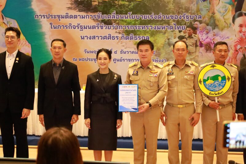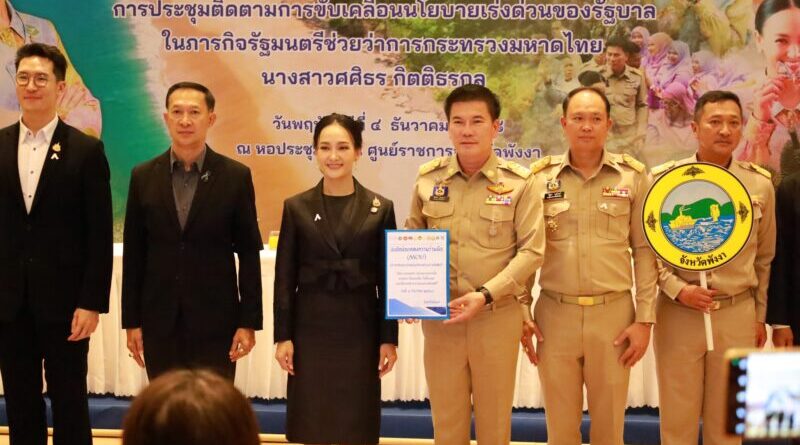 วันที่4 ธันวาคม 2568 ที่หอประชุมจำปูน ศูนย์ราชการจังหวัดพังงา นางสาวศศิธร กิตติธรกุล รัฐมนตรีช่วยว่าการกระทรวงมหาดไทย เป็นประธานเปิดงาน “พลังสตรีกับการขจัดความรุนแรงในระดับพื้นที่” จังหวัดพังงา โดยมี นายไพรัตน์ เพชรยวน ผู้ว่าราชการจังหวัดพังงา นายบัญชา ธนูอินทร์ รองผู้ว่าราชการจังหวัดพังงา นายสราวุฒิ ธนาเจริญสกุล รองผู้ว่าราชการจังหวัดพังงา นายอำเภอ หัวหน้าส่วนราชการ องค์กรปกครองส่วนท้องถิ่น ผู้นำท้องที่ คณะกรรมการพัฒนาสตรี คณะทำงานขับเคลื่อนกองทุนพัฒนาบทบาทสตรี เครือข่ายสตรีทุกอำเภอ เข้าร่วมกิจกรรม พร้อมมีการลงนามบันทึกข้อตกลง (MOU) กิจกรรมยุติความรุนแรงต่อสตรีจังหวัดพังงา 13 หน่วยงาน