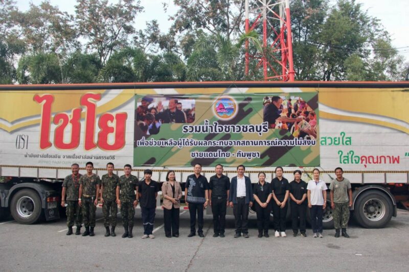 พลังน้ำใจคนชลบุรีหลั่งไหล!ส่งมอบสิ่งของช่วยผู้ประสบภัยชายแดนไทย-กัมพูชา