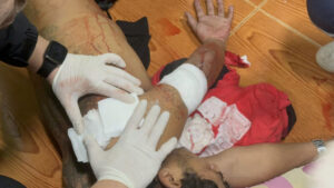 ด้าน นายแพทย์นนท์ ประพันธ์โรจน์ เจ้าของคลินิก เปิดเผยว่า ระหว่างปฏิบัติงาน มีชายบาดเจ็บวิ่งเข้ามาขอความช่วยเหลือ พร้อมแจ้งว่าถูกทำร้าย ตนเห็นมีเลือดไหลออกจากลำตัวหลายจุด แต่เนื่องจากคลินิกไม่มีอุปกรณ์สำหรับรักษาผู้บาดเจ็บสาหัส จึงแนะนำให้นำตัวส่งโรงพยาบาล ก่อนที่ผู้บาดเจ็บจะทรุดตัวลงนอนกับพื้นด้วยความเจ็บปวด และมีพลเมืองดีโทรแจ้งเจ้าหน้าที่กู้ภัยเข้าช่วยเหลือ